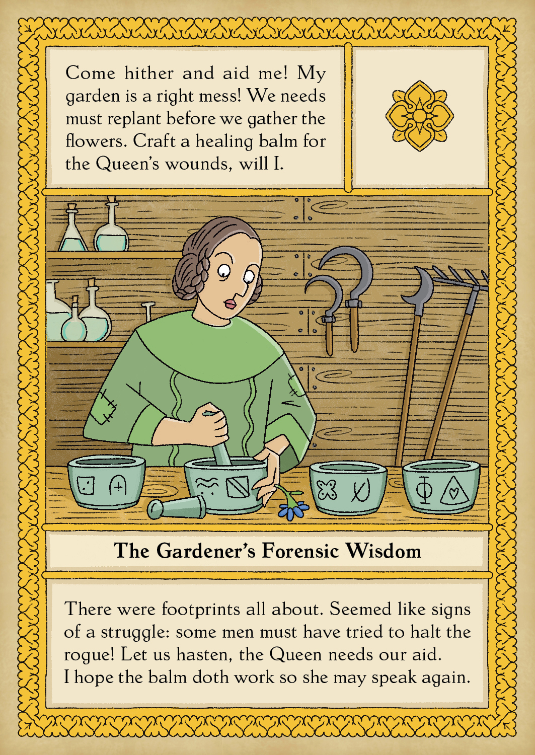 Description: Royal Heist is a puzzle adventure x boardgame x whodunnit. The Queen has been attacked. The noblemen Sir Owen, Sir Patrick, Sir Nolan, Sir Albert & Sir Ulrich are your main suspects. The goal of “Royal Heist” is to solve puzzles and riddles to understand what really happened to the Queen.